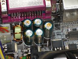 En el caso de la figura podemos ver que los condensadores esta abultados, lo que indica desperfecto en los mismos,
